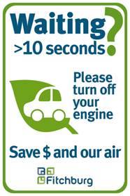 The City of Fitchburg embarked on an Idling Reduction Campaign in 2012 to encourage all residents to reduce their voluntary idling; idling when a vehicle is not actually being driven such as waiting in drive-thru lanes, waiting to pick up or drop off passengers / packages and warming up the engine. In addition to wasting fuel, voluntary idling is a significant and easily reduced source of pollution. Vehicle idling impacts air quality, climate change, health, and your pocket book!