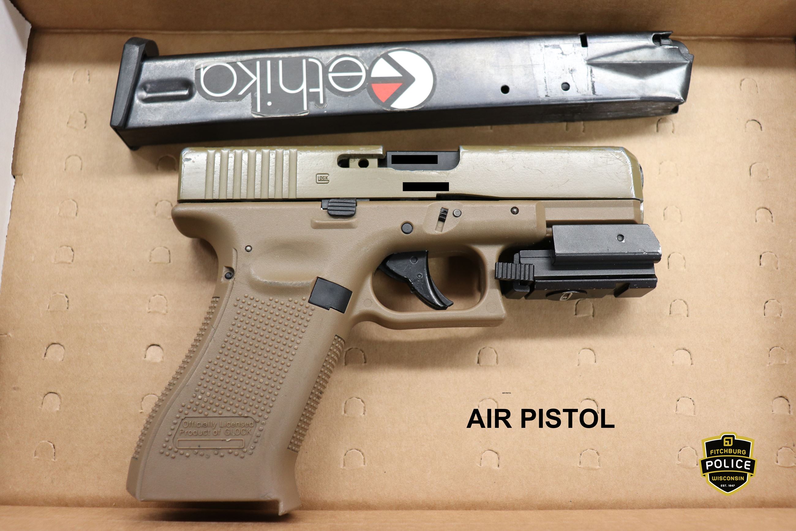 Once the teenagers were taken into custody, personnel from the Fitchburg Police Department conducted a search warrant at the Turbot Drive residence. Evidence related to the June 6 robbery was located along with a 9mm handgun and an air pistol that resembled an actual firearm (pictured below). Numerous pieces of evidence from multiple crimes, including several residential burglaries, were also located.
