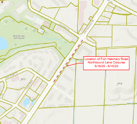 One northbound lane, two at times, will be closed starting May 19, 2025, through June 15, 2025, to accommodate water main installation. Please see link to map of lane closure. Vehicles will be able to get through at all times. However, please use other routes if possible.