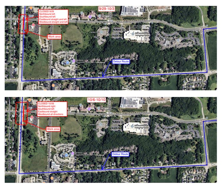 - September 29–October 3: The northbound left-turn lane and the center of the intersection will be closed.