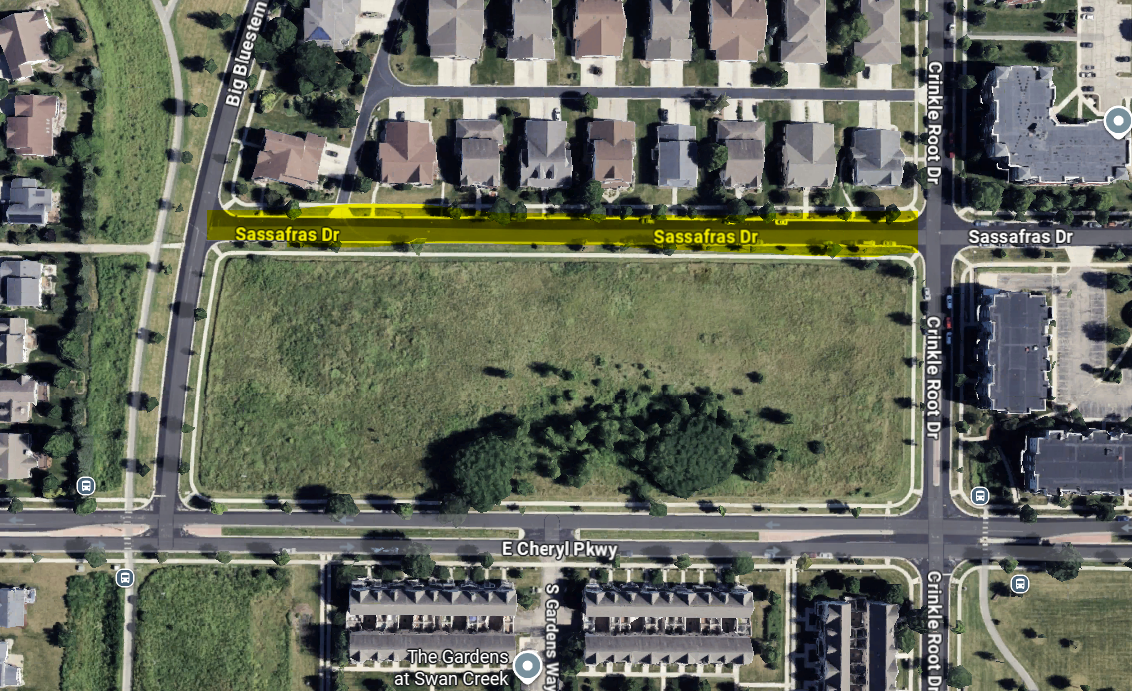 Sassafras Drive from Big Bluestem Pkwy. to Crinkle Root Drive will be closed this week to accommodate resurfacing. Please see the linked map. Vehicles will not be able to get through during paving. Paving is scheduled to take 1-2 weeks, with the specific dates depending on weather.